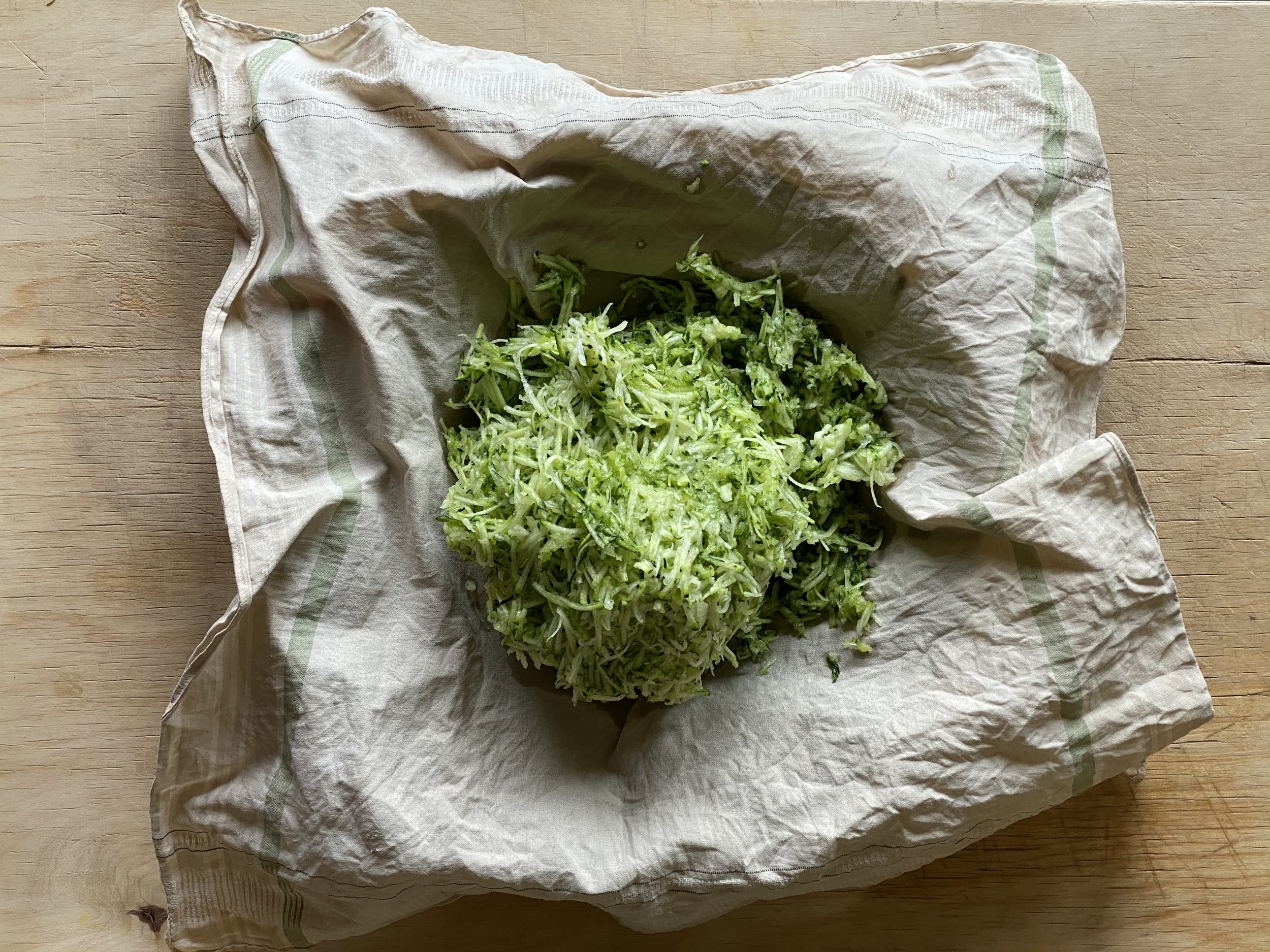 Do mističky nasyp 1 lžíci chia semínek a zalij to pár lžícemi teplé vody. Nech odstát.Nastrouhej velkou cuketu