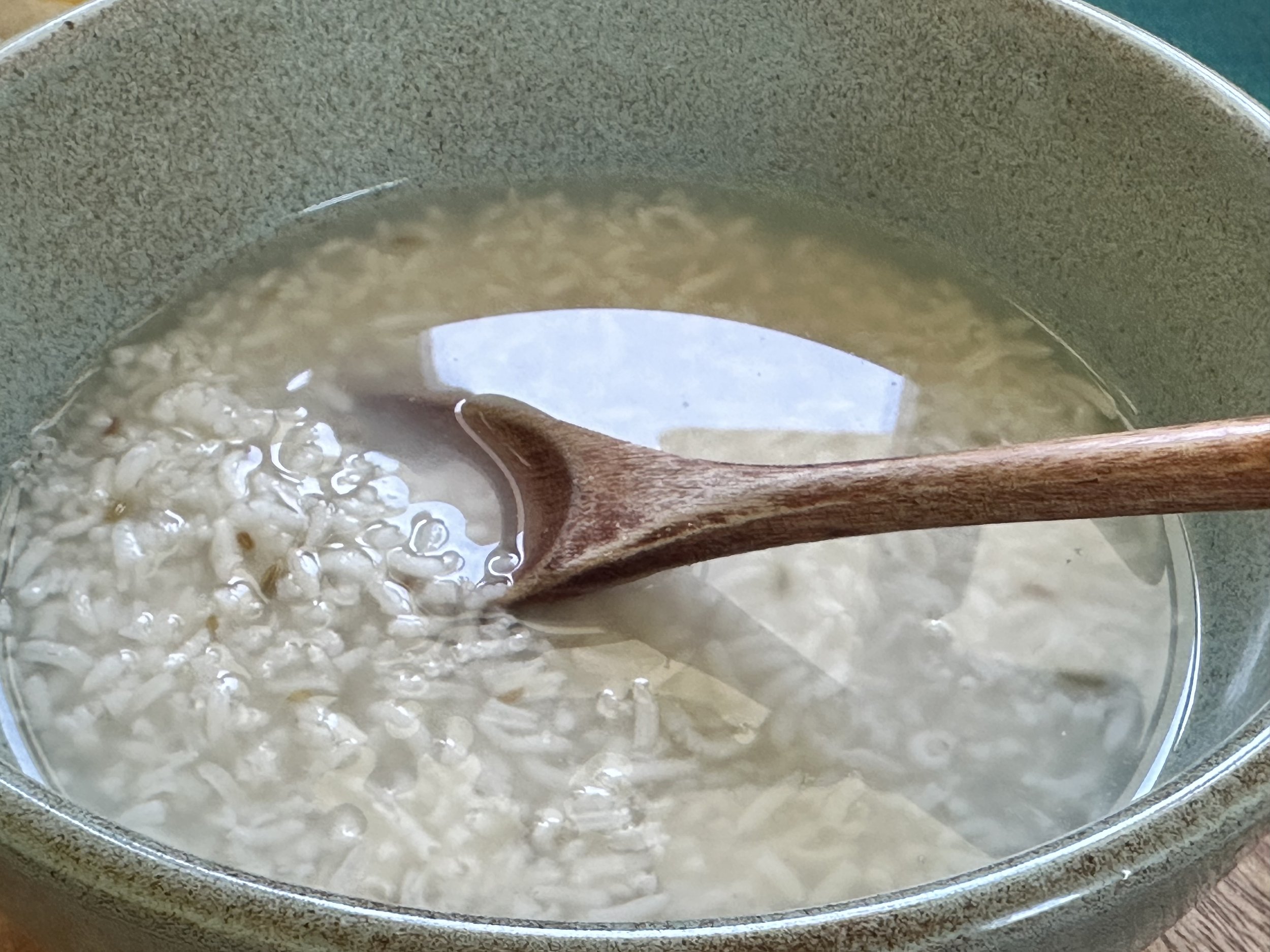 Pokud potřebuješ pouze rýžový nápoj, slij polévku a použij jen tekutinu. Zbylou rýži může kdokoli další použít jako klasickou přílohu. V případě vysoké pitty nezapomeň nejdřív mandu nechat vychladnout!